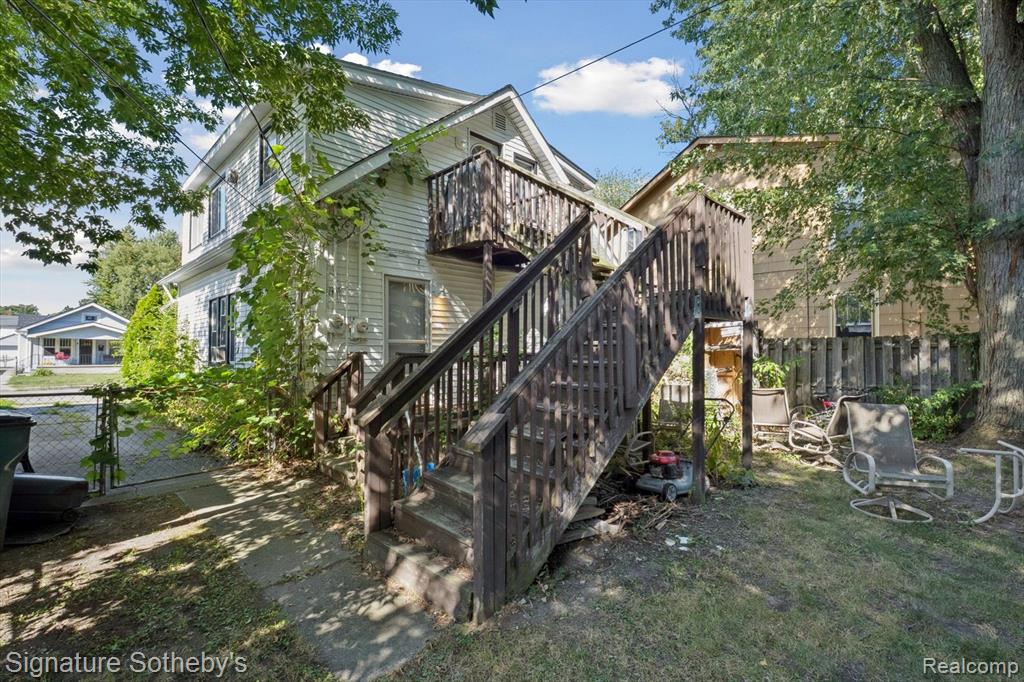 The property features a separate rear entrance for the upper unit, shared laundry facilities in the basement (with potential to add coin-operated machines for extra income), and all appliances included. The exterior has been recently painted, and the home sits on a massive backyard where the city has indicated an ADU could be approved for even more income potential.